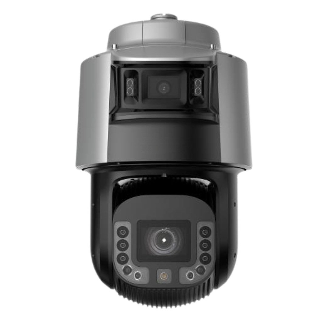 Gracias a su doble canal con resolución de 4 MP: uno tipo bullet fijo y otro PTZ con zoom óptico de 42x y digital de 16x. La visión nocturna se extiende hasta 30 metros con luz blanca en el canal bullet y hasta 300 metros mediante infrarrojos en el canal PTZ. Integra funciones de inteligencia artificial para la detección simultánea de rostros, personas y vehículos, y es compatible con seguimiento automático. Además, incluye mejoras como WDR de 120 dB, estabilización electrónica (EIS), reducción de ruido 3D y máscaras de privacidad programables, lo que la convierte en una solución integral para vigilancia de alto nivel.