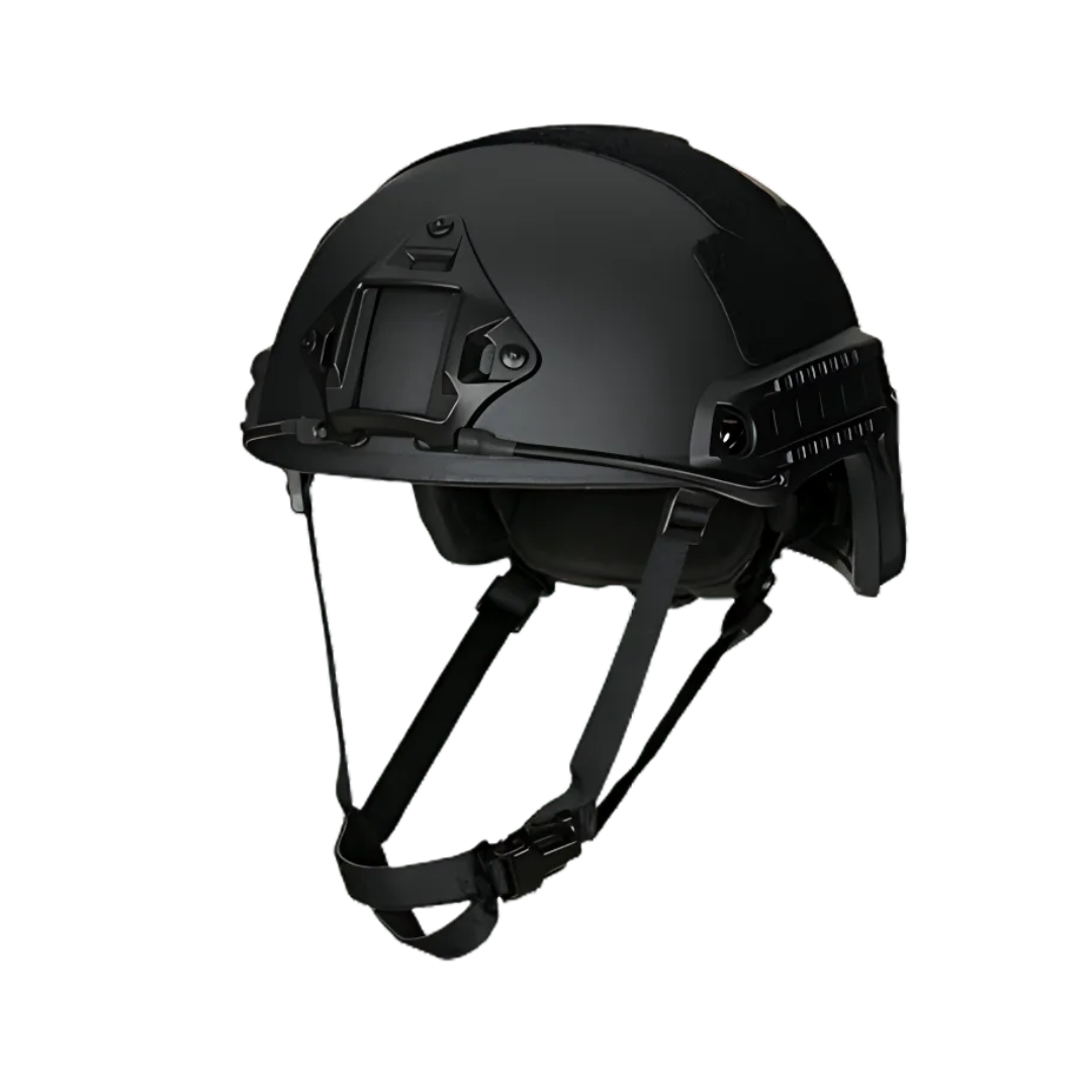 Desarrollado bajo la norma NIJ III-A y probado con estándares STANAG 2920, ofrece protección amplia desde la frente hasta la nuca. Incorpora rieles laterales, soporte para visión nocturna, sistema de ajuste tipo ratchet y acolchado interior ergonómico. Compatible con equipos de comunicación externa.
