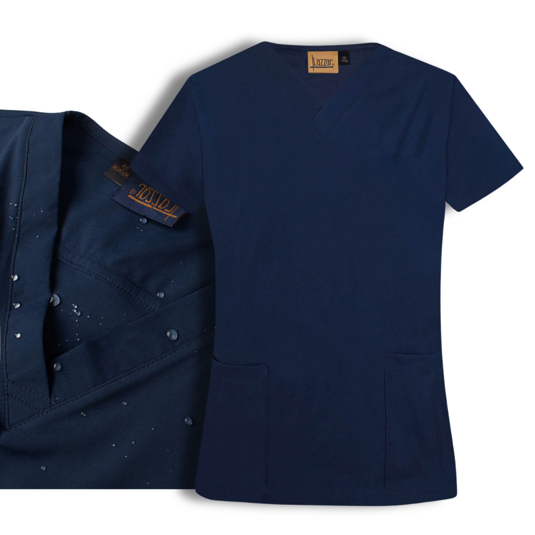 Confeccionada en tela Iguazú, de textura suave y ligera, permite libertad de movimiento sin sacrificar presencia. Su corte favorecedor con cuello en “V” y mangas cortas se adapta a diferentes tipos de cuerpo, mientras que sus bolsillos inferiores, uno que ellos con compartimiento para porta-plumas, ofrecen practicidad en las labores.