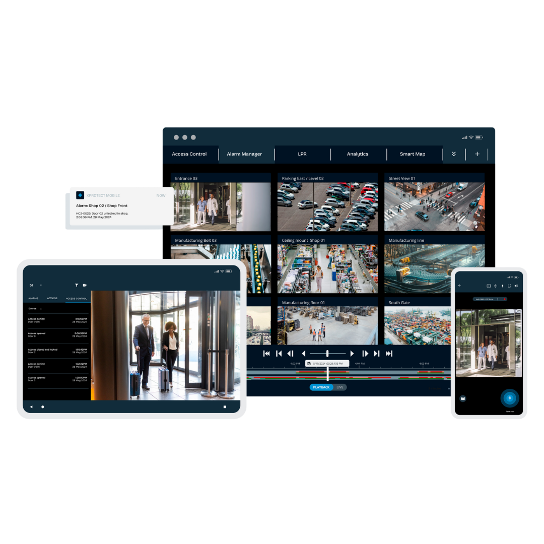 Diseñado para adaptarse a todo tipo de entornos, desde instalaciones pequeñas hasta infraestructuras complejas, permite visualizar en tiempo real lo que ocurre, identificar incidentes y actuar con rapidez. Su interfaz intuitiva facilita el uso cotidiano, mientras que su compatibilidad con múltiples dispositivos brinda libertad al momento de elegir el hardware ideal para cada necesidad. Además, la integración con sistemas como control de accesos o lectura de placas convierte a XProtect en una herramienta completa para quienes buscan eficiencia y control en un solo lugar. Es una opción ideal para quienes priorizan la seguridad sin complicaciones.